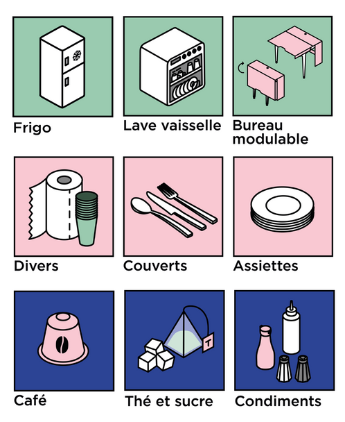 • pictogrammes accessibles universellement grâce à l’usage de la perspective et la présence humaine (échelle, compréhension des usages),